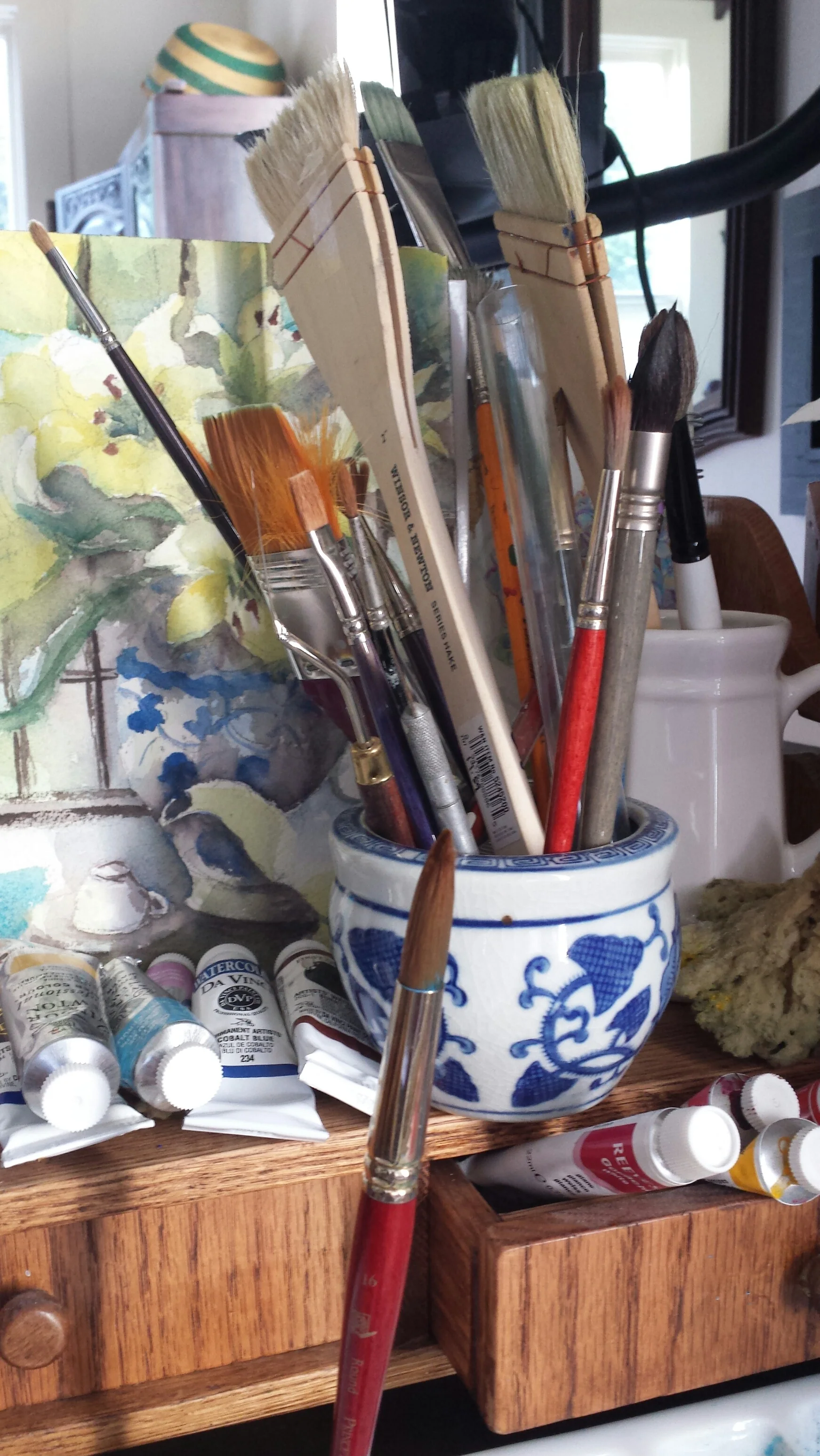 Inspiration for painting can come anywhere. I love colors, fragrances, light dancing across surfaces, flowers. Pottery is also an unending wealth of inspiration. I've been painting now for about 20 years. Becoming an artist and exploring watercolor has opened my eyes to the nuances of beauty that constantly surround us. I hope that together I can help open your eyes to really see and explore your environment in new and exciting ways.