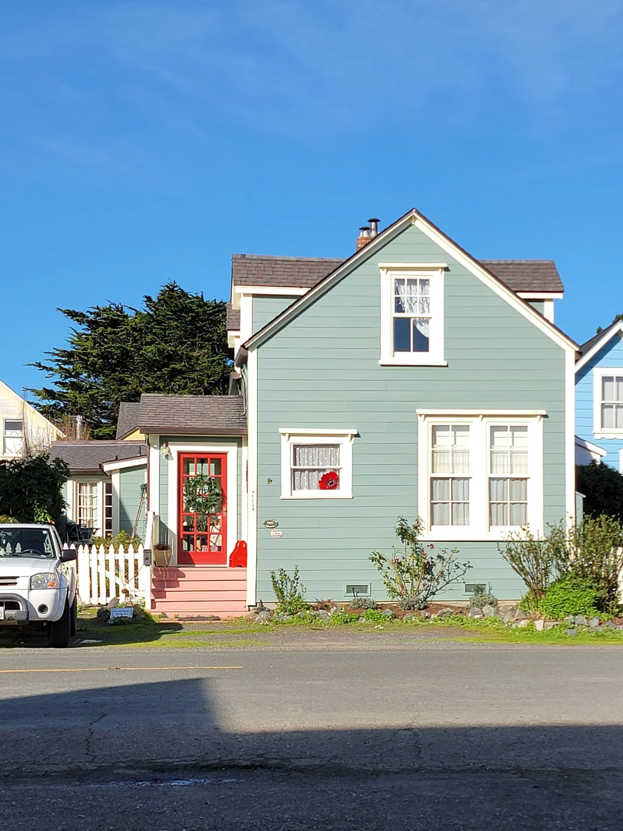 I love the color play on the houses, the long shadows, the light that darts around corners. I love the quaintness of the village, the people strolling around hungry for the peace found here at the edge of the earth. How blessed I feel to be parked here, my home.